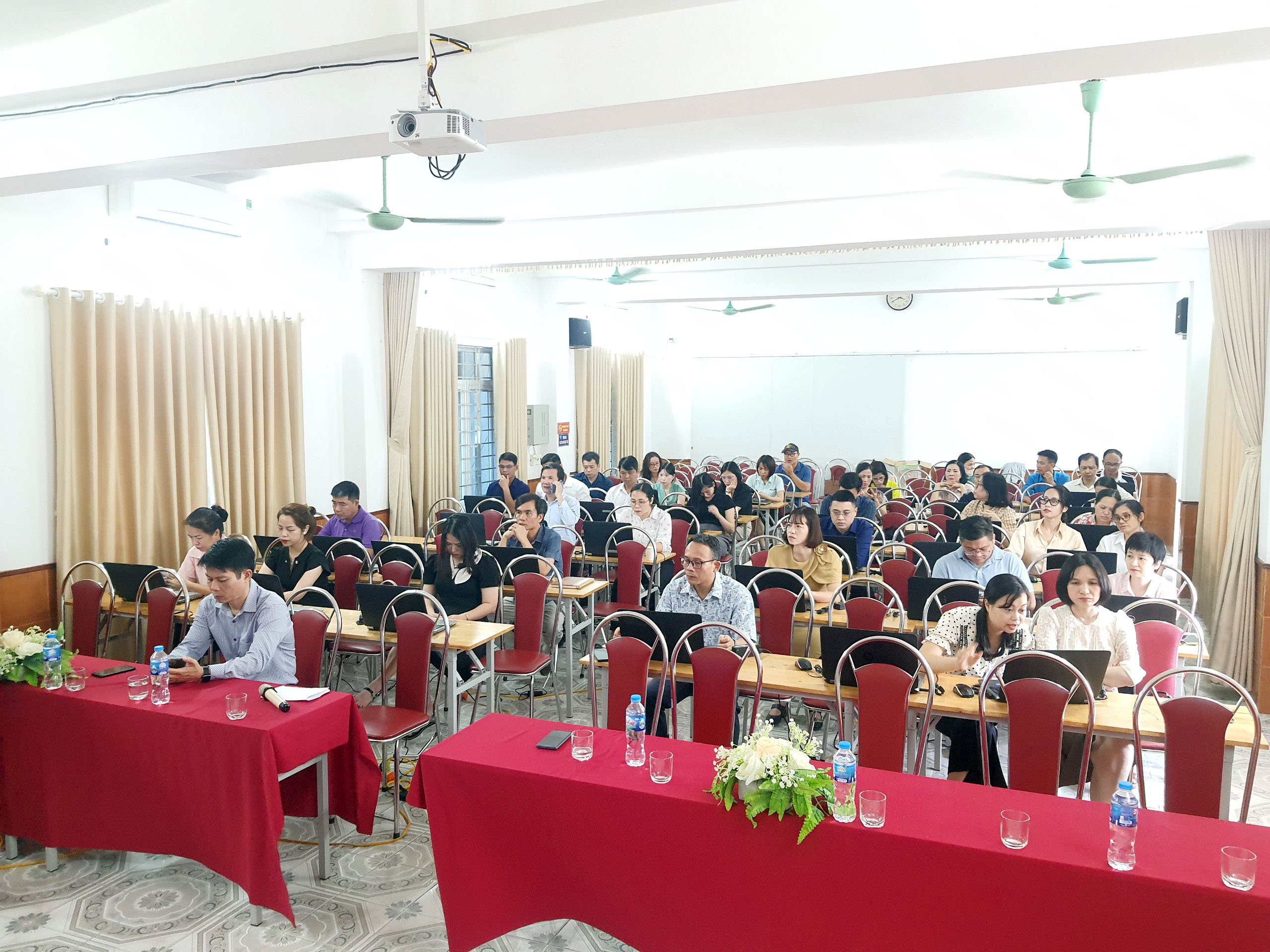 Các học viên đang thực hành trên máy tính xách tay tại buổi tập huấn