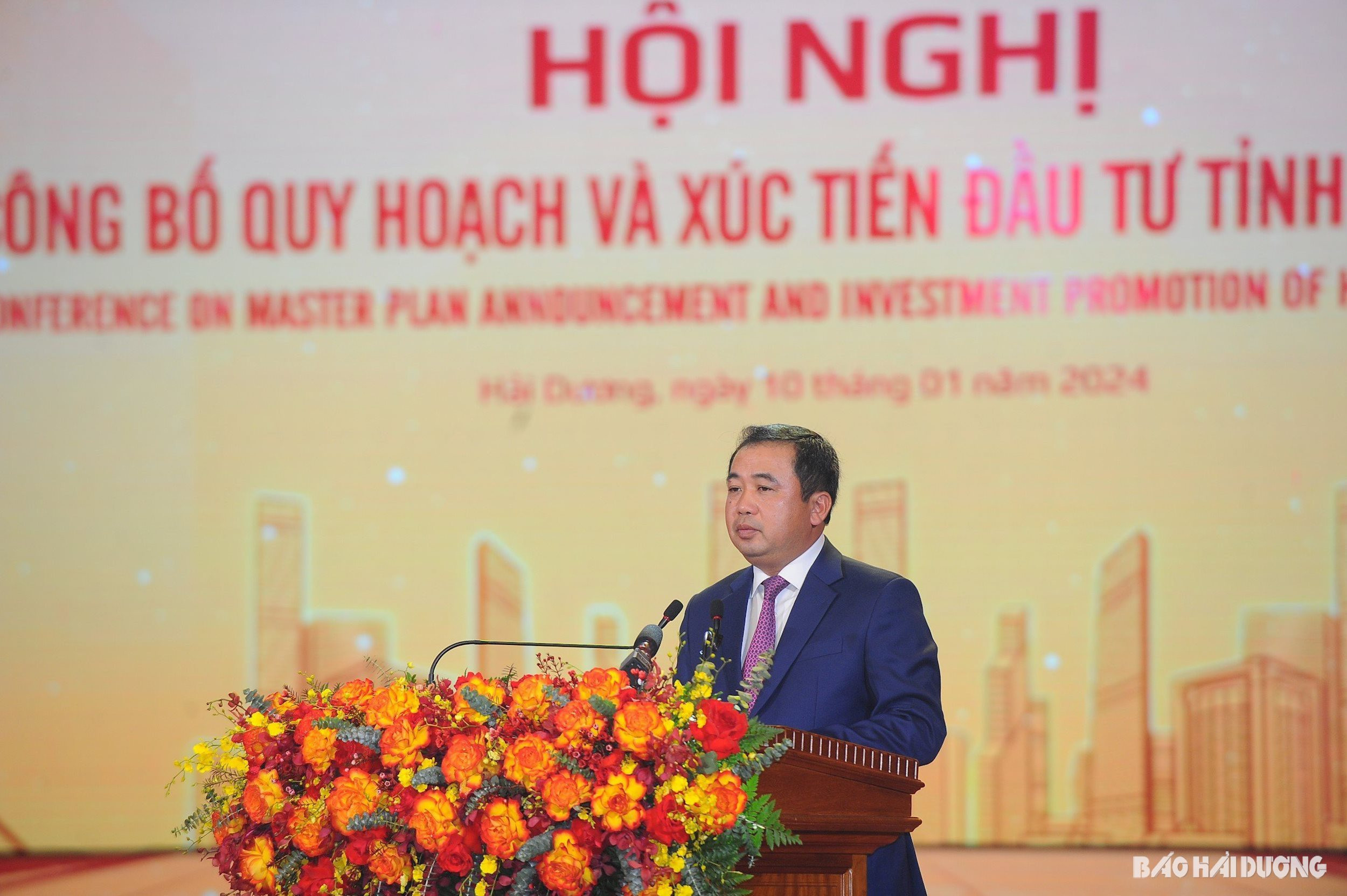 Đồng chí Bí thư Tỉnh ủy Hải Dương Trần Đức Thắng cho biết Hải Dương quy hoạch đến năm 2030 là tỉnh công nghiệp hiện đại, có quy mô nền kinh tế lớn trong cả nước; kết cấu hạ tầng đồng bộ; hệ thống đô thị xanh, thông minh, giàu bản sắc; đạt một số tiêu chí cơ bản của thành phố trực thuộc trung ương. Tầm nhìn đến 2050, Hải Dương đạt tiêu chí thành phố trực thuộc Trung ương. Để từng bước thực hiện khát vọng, mục tiêu phát triển, tại hội nghị cùng với công bố những thông tin cơ bản về nội dung quy hoạch, tỉnh cũng giới thiệu những tiềm năng, lợi thế, định hướng thu hút đầu tư của tỉnh đến các nhà quản lý, nhà đầu tư và cộng đồng doanh nghiệp. Tỉnh công bố danh mục các dự án thu hút đầu tư giai đoạn 2024-2030 và trao quyết định chủ trương đầu tư, giấy chứng nhận đăng ký đầu tư, biên bản ghi nhớ cho một số nhà đầu tư trên địa bàn tỉnh.