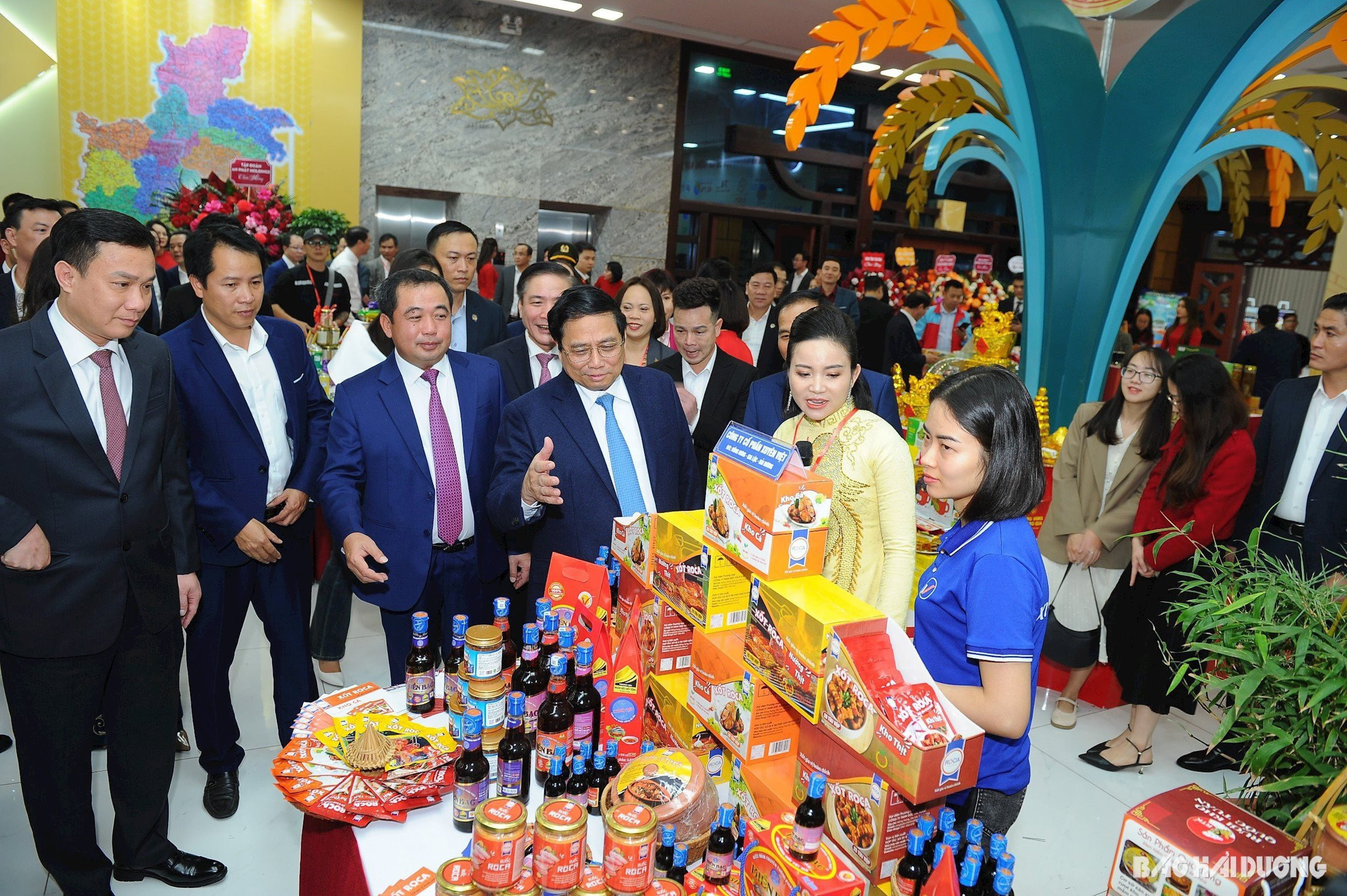Thủ tướng Chính phủ Phạm Minh Chính tham quan khu vực trưng bày sản phẩm tiêu biểu của tỉnh Hải Dương