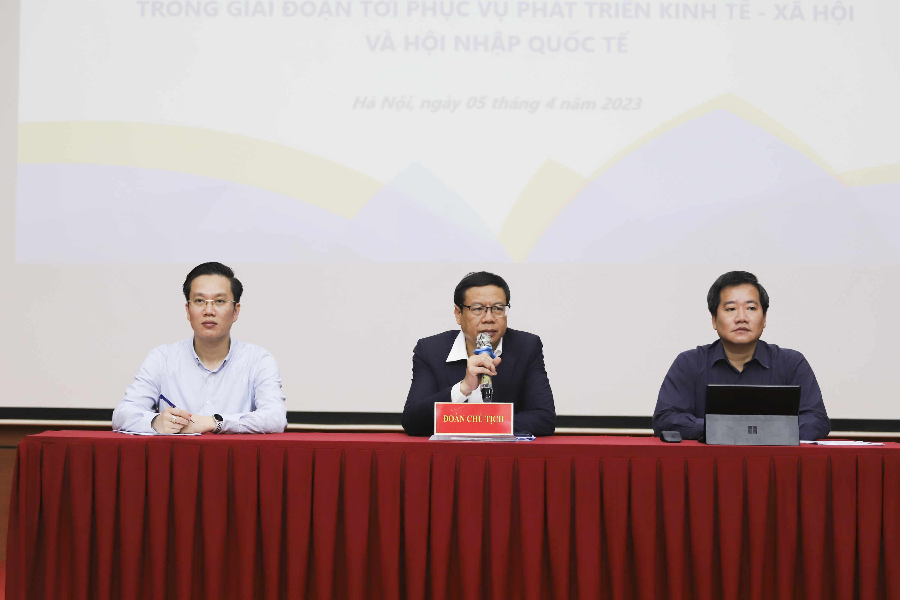 Đoàn Chủ tịch điều hành buổi thảo luận (từ trái sang: ông Hà Minh Hiệp - Phó Tổng cục trưởng phụ trách Tổng cục TCĐLCL; ông Lê Xuân Định - Thứ trưởng Bộ KH&CN; ông Nguyễn Hoàng Linh - Phó Tổng cục trưởng Tổng cục TCĐLCL).