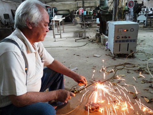 Ông Vũ Hồng Khánh, tác giả của chiếc máy tách hydro và oxy từ nước bằng phương pháp điện phân được cấp bằng sáng chế độc quyền năm nay đã 75 tuổi, song vẫn đam mê nghiên cứu, tiếp tục cho ra đời nhiều sáng chế phục vụ đời sống.