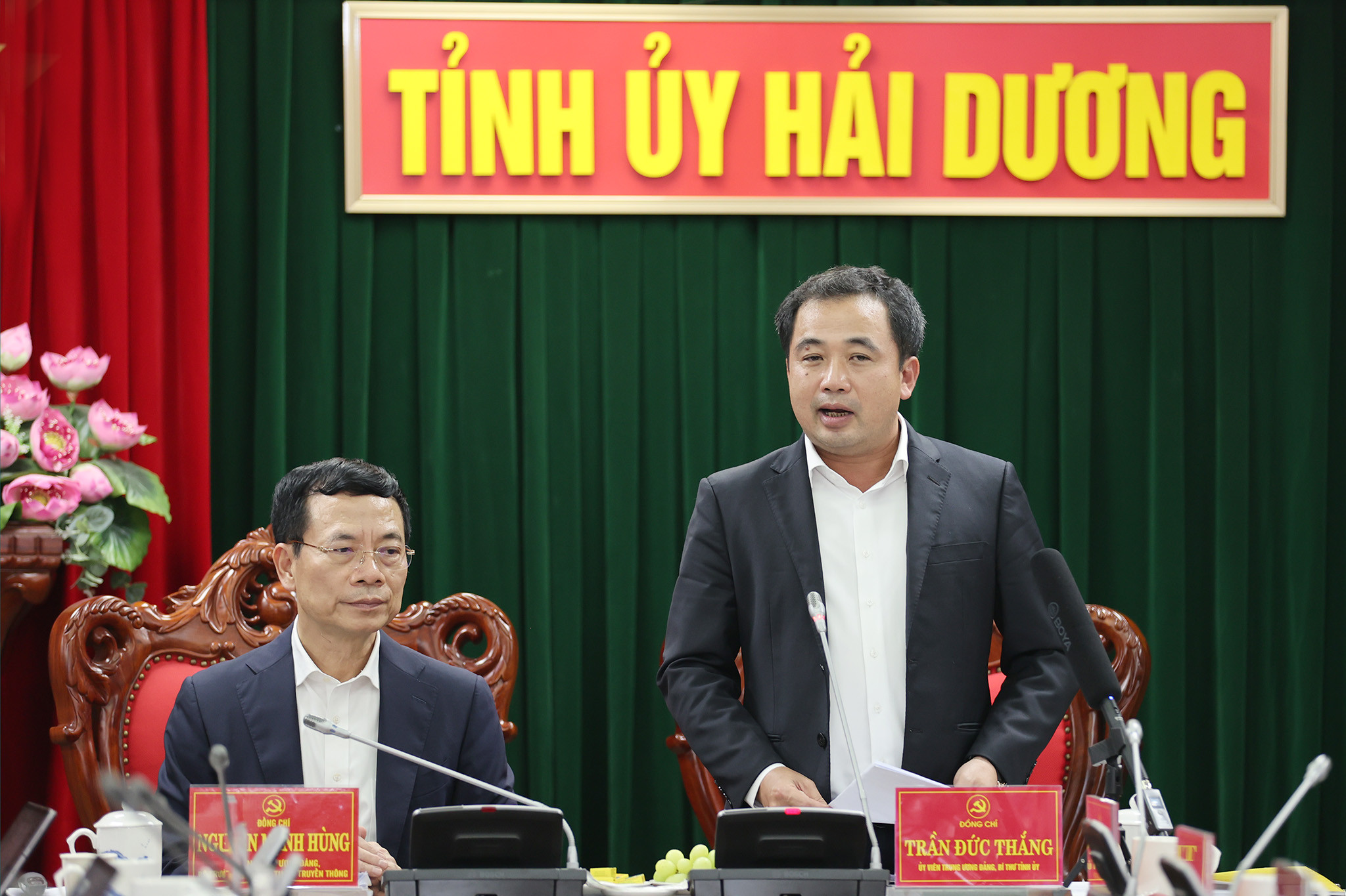 Bí thư tỉnh Hải Dương Trần Đức Thắng cho biết: “Tới đây, Hải Dương sẽ định hình rõ từng phần việc cụ thể, phối hợp từng doanh nghiệp cụ thể để triển khai. Qua buổi làm việc với đoàn công tác của Bộ trưởng, tỉnh Hải Dương đã thấy được bức tranh chuyển đổi số của địa phương đang ở đâu, thời gian tới cần làm gì. Chúng tôi hứa, thời gian tới, Hải Dương sẽ nỗ lực để có bức tranh tổng thể về chuyển đổi số. Muộn nhất là tháng 5 tới, tỉnh sẽ vẽ con đường đi cụ thể. Ban thường vụ xác định nếu không làm được cái này để gắn với Đề án 06 thì có nguy cơ tụt hậu”.