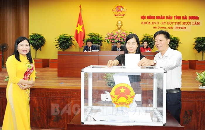 Chiều 2.6, tại Kỳ họp thứ 15 HĐND tỉnh Hải Dương khóa XVII, các đại biểu đã bỏ phiếu bầu bổ sung Ủy viên UBND tỉnh khóa XVII, nhiệm kỳ 2021-2026.